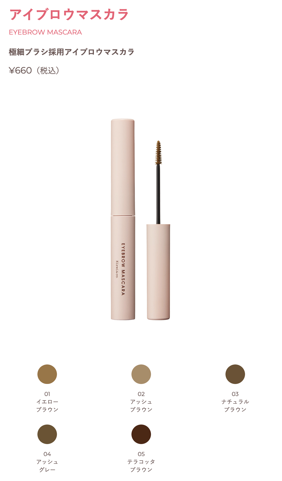 | Kirei&co. アイブロウマスカラ ・イエローブラウン ・アッシュブラウン ・ナチュラルブラウン ・アッシュグレー ・テラコッタブラウン |