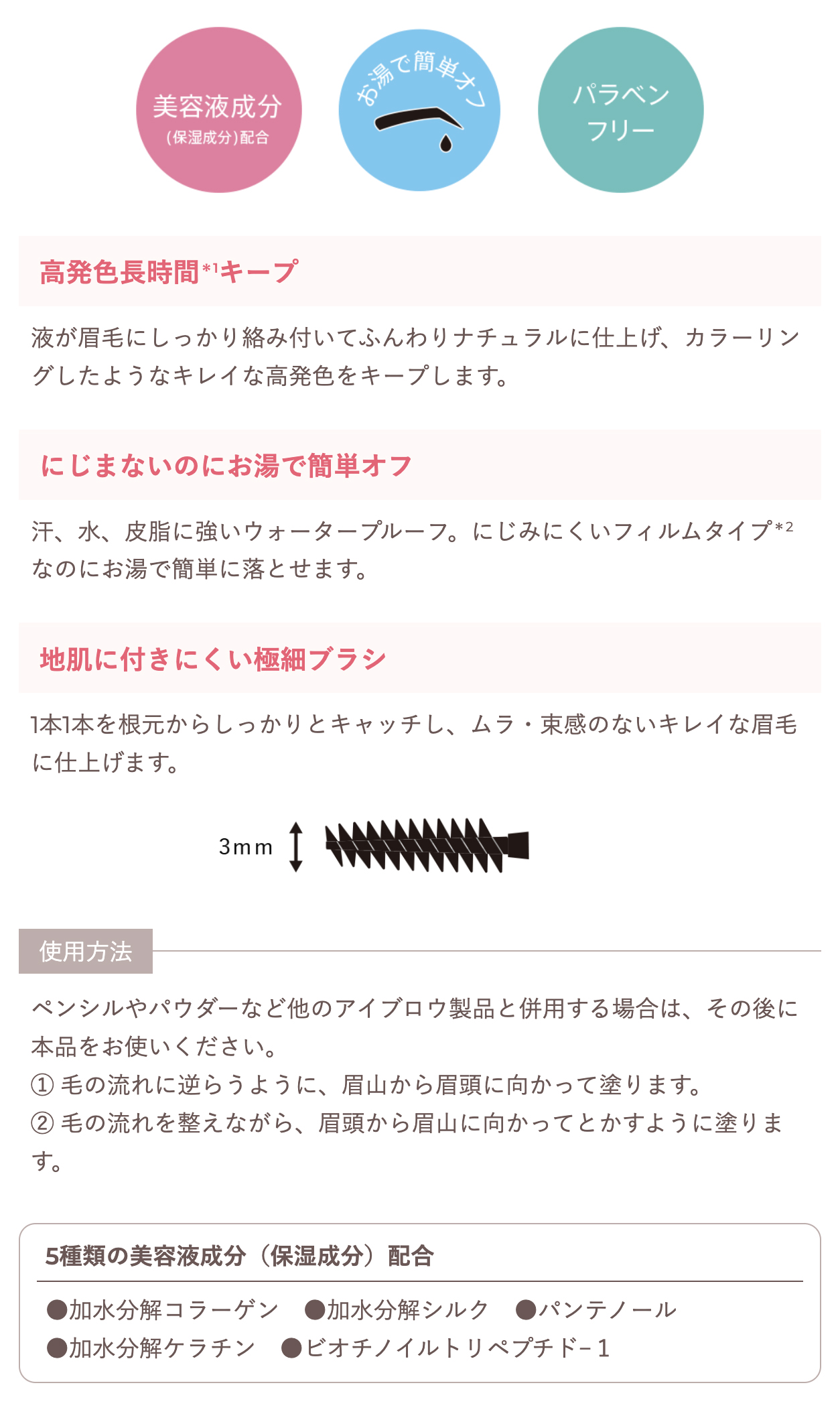 | ●お肌に異常が生じていないかよく注意して使用下さい。化粧品がお肌に合わないとき即ち次のような場合には、ご使用を中止してください。そのまま化粧品類の使用を続けますと、症状を悪化させることがありますので、皮膚科専門医等にご相談されることをおすすめいたします。 (1)使用中、赤味、はれ、かゆみ、刺激、色抜け(白斑等)や黒ずみ等の異常があらわれた場合。 (2)使用したお肌に、直射日光があたって上記のような異常があらわれた場合。 ●傷やはれもの、しっしん等、異常のある部分にはお使いにならないで下さい。 ●目に入らないようご注意ください。入った場合はこすらずに、すぐにきれいな水またはぬるま湯で洗い流して下さい。 ●お子様の手の届かない場所に保管して下さい。 ●直射日光のあたる場所、極端に高温または低温の場所での保管が避けて下さい。 ●使用後は必ずキャップをしめて下さい。 ●芯を出し過ぎたり、落下などの衝撃により折れることがありますのでご注意下さい。 ●衣服などにつくと落ちない場合がありますのでご注意ください。 |