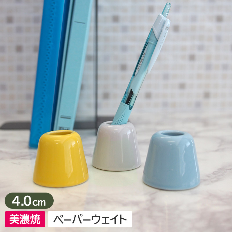 ペーパーウェイト 陶製 ペン立て 歯ブラシスタンドにも 文房具 文具 多用途 日本製 / ペン立て付 ペーパーウェイト・ミニ (3色選択) Φ4cm×h3.5cm