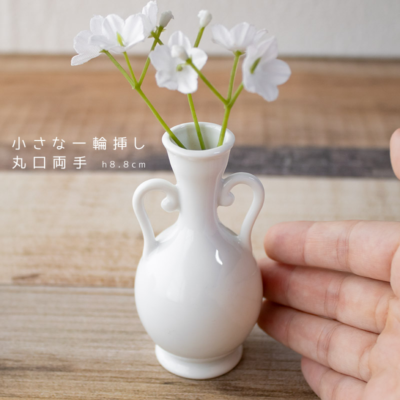 一輪挿し 花瓶 陶器 ミニ 白 コンパクト 小さいサイズ / 白い小さな一輪挿し 丸口両手 h8.8cm