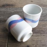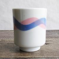 白地にピンクとブルーのラインがウェーブのように入っている湯呑みです。