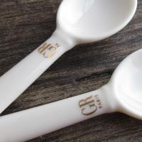 陶器でできている、白いシンプルな陶器のティースプーンです。