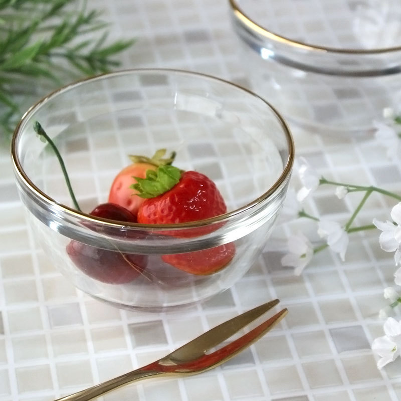 ガラスボウル ガラス小鉢 ガラス食器 デザート アイス ヨーグルト ゼリー / ころんとした金彩ガラスデザート鉢