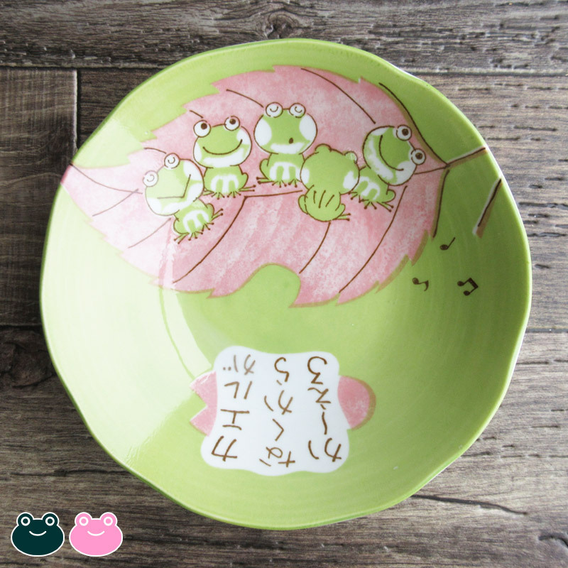 カエルちゃん 中浅鉢 20.7cm(2色選択)/ グリーン ピンク 蛙 かえる 動物柄 和風 黄緑色 カレー皿 パスタ皿 サラダボウル 深皿