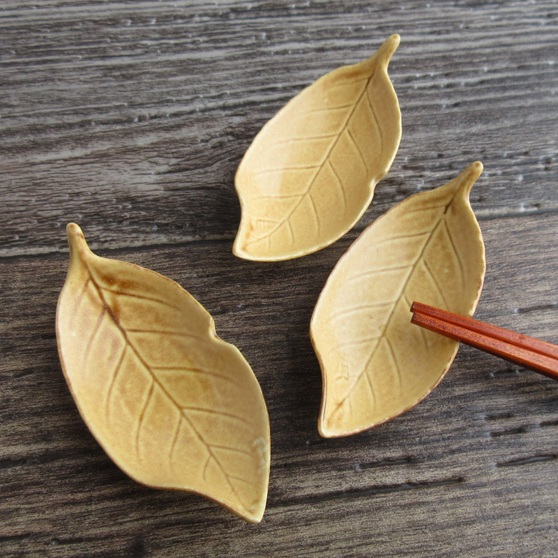 珍味入れ 珍味鉢 小付け 和食器 豆皿 小皿 箸置き はしおき リーフ 葉っぱの形 カトラリーレスト 貫入 木の葉 / リーフ珍味(キャラメル)