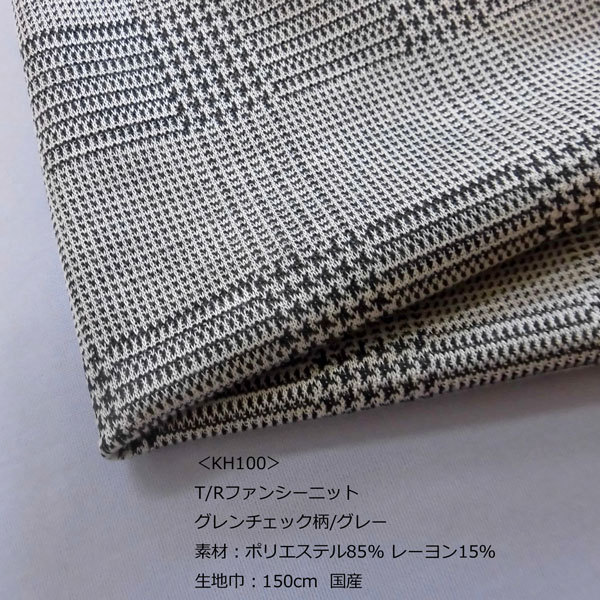 T/Rジャガードファンシーニット(KH100)グレンチェック柄/グレー 生地巾150cm 数量1(50cm)390円 国産 再入荷(3回目)