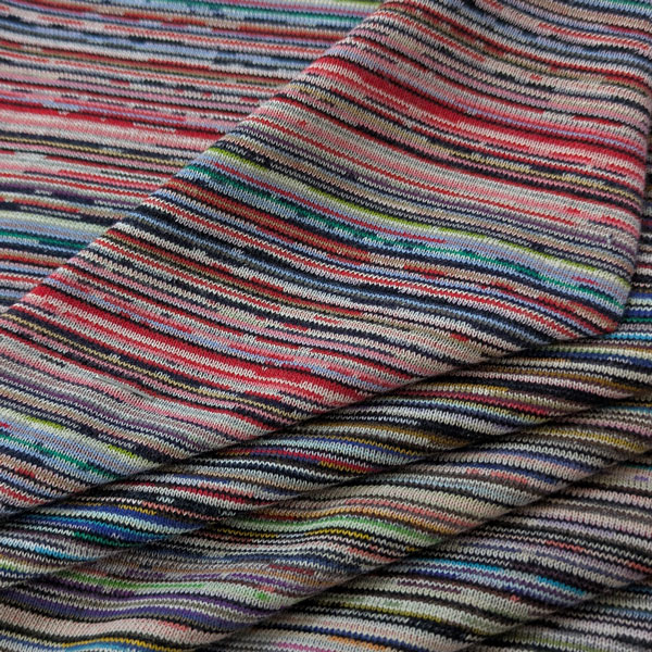 【高品質綿糸リサイクル】綿30/天竺ニット(2007-15)*残糸*カラフル先染マルチボーダー 生地巾170cm 数量1(50cm)500円 MADE in JAPAN