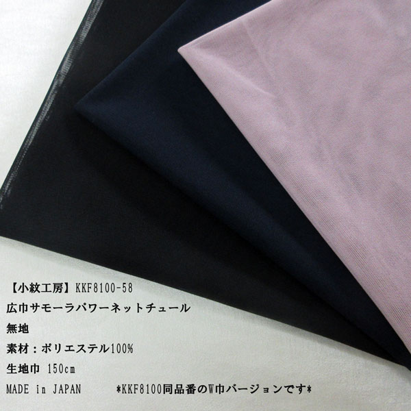 【小紋工房】P100%サモーラパワーネットチュール広巾(KKF8100-58) 無地 生地巾150cm 数量1(50cm)300円 MADE in JAPAN