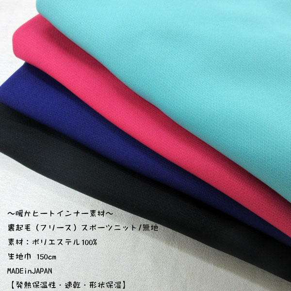 裏起毛スポーツニット(EC64KR)無地【発熱保温性・速乾・形状保持 】 生地巾150cm 数量1(50cm)330円 MADEinJAPAN