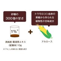 トウモロコシ由来の果糖から作られる植物性の甘味成分、希少糖「アルロース」と、砂糖の約300倍の甘さを持つウリ科の果実「羅漢果(ラカンカ)」の高純度エキスを、バランスよく配合することによって砂糖の甘味度(甘さ)に近づけています。