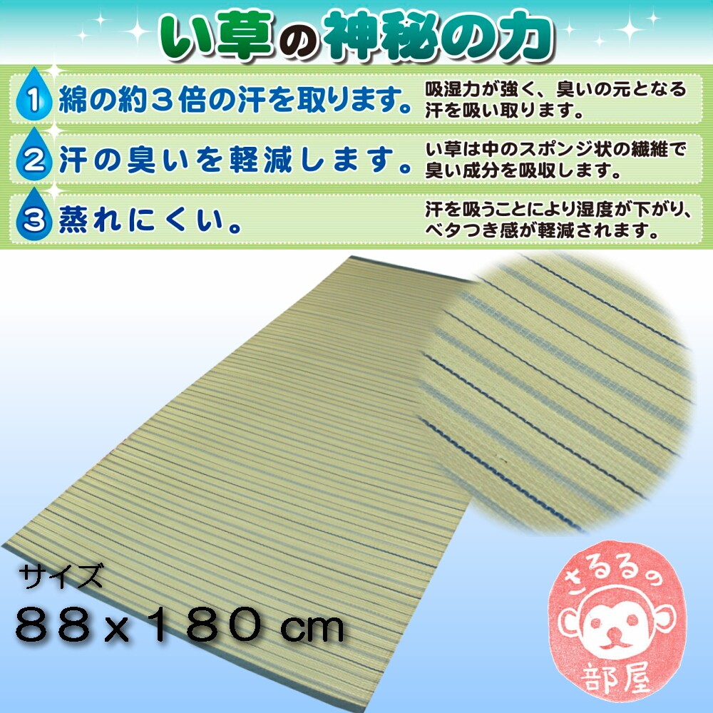 88x180cm い草シーツ(寝ござ)ストライプ ブルー色