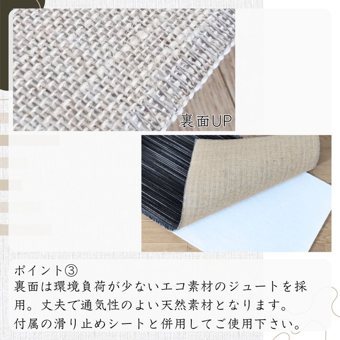 裏面は丈夫な天然素材の麻:ジュートを採用。