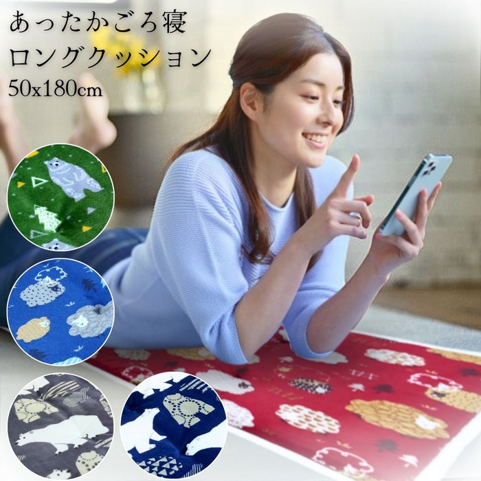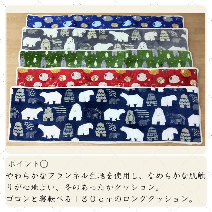 あったかごろ寝クッション かわいい冬柄 50x180cm 寝転べるロングサイズ 冬用 フランネル ふっくらふかふか