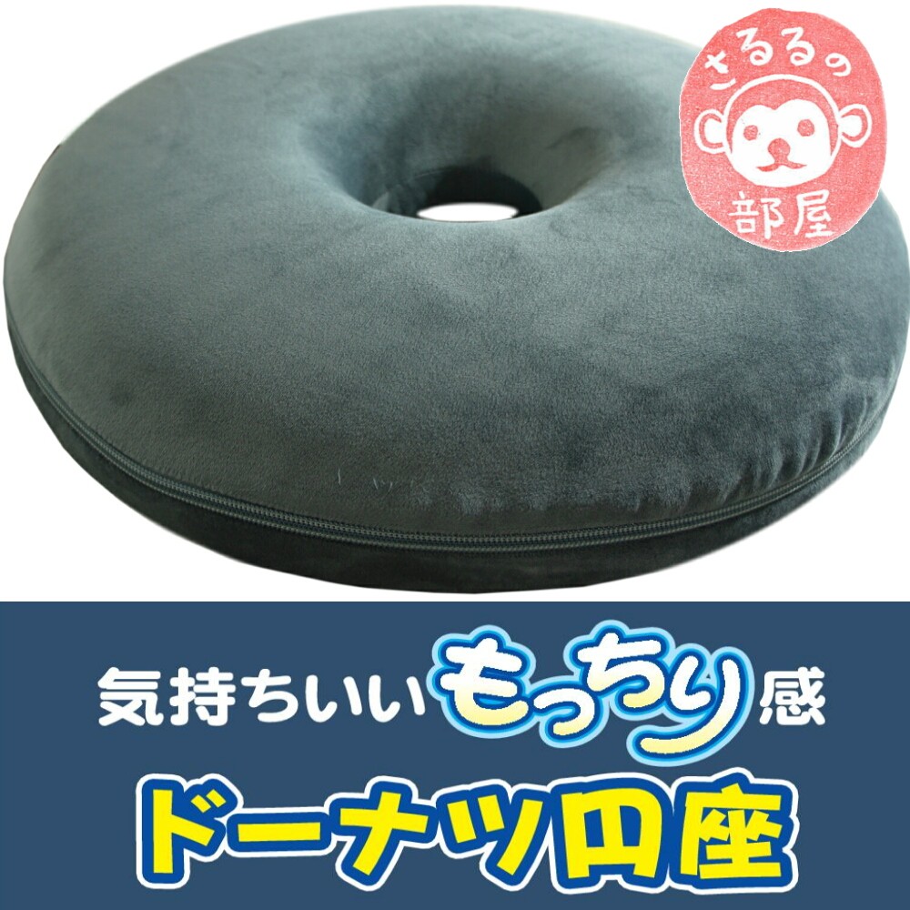 40Rx5cm 円座ドーナツ型クッション 低反発ウレタン入り グレー色 【カバー取り外しOK】