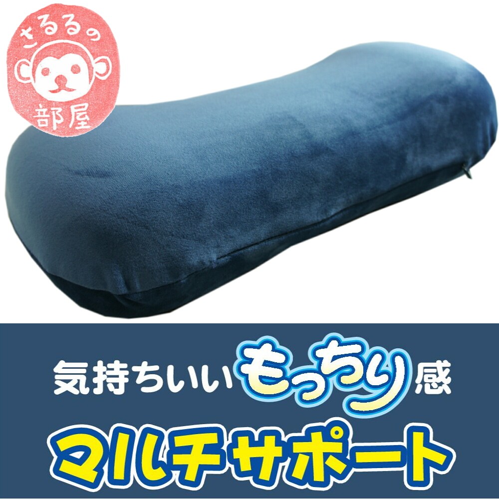 44x20x12cm マルチサポート(腰当)クッション 低反発ウレタン入 ネイビー色 【カバー取り外しOK】