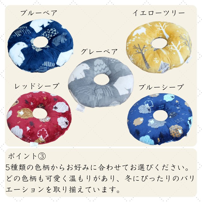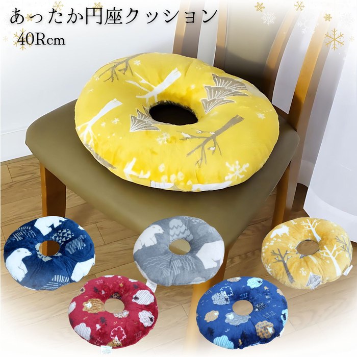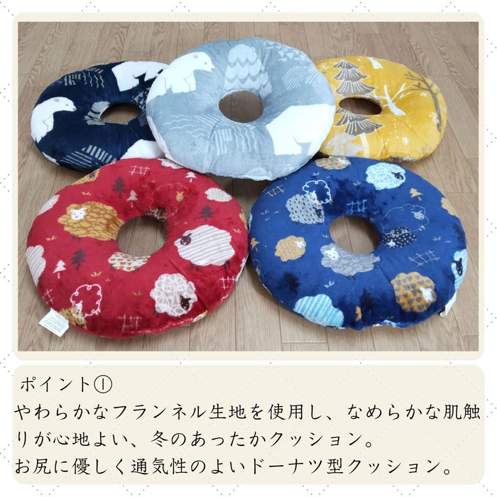 あったか円座クッション かわいい冬柄 40cm丸 お尻にやさしい 冬用 フランネル ふっくらふかふか