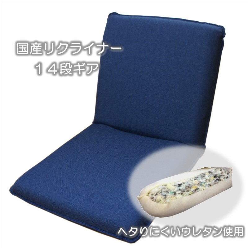 コンパクトで小さな国産座椅子 ピッコロ2 ネイビー ギア式 14段階リクライニングチェアー 丈夫でヘタリにくい 日本製