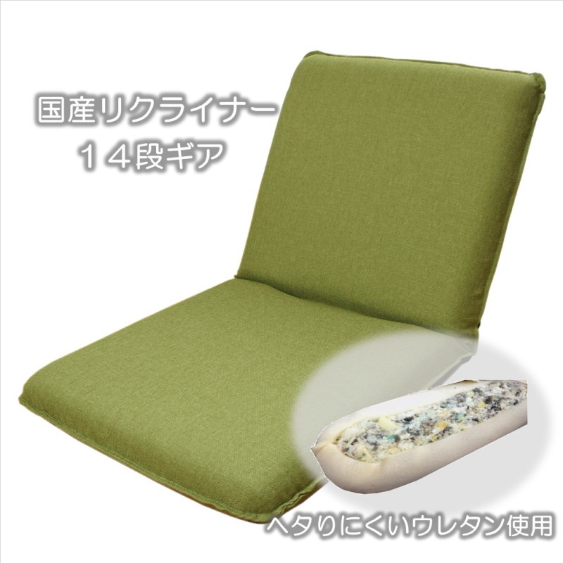 コンパクトで小さな国産座椅子 ピッコロ2 グリーン ギア式 14段階リクライニングチェアー 丈夫でヘタリにくい 日本製