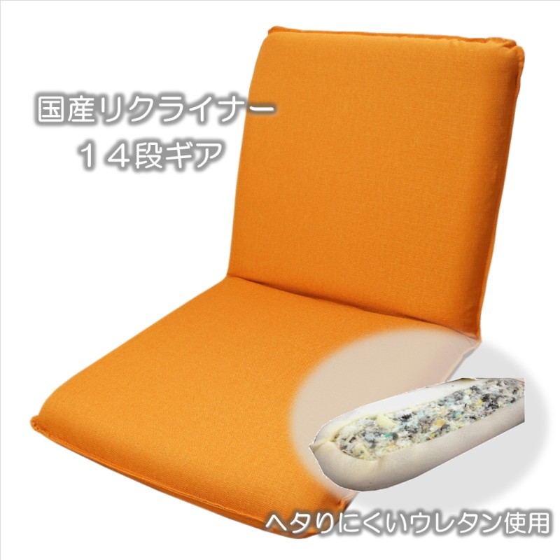 コンパクトで小さな国産座椅子 ピッコロ2 オレンジ ギア式 14段階リクライニングチェアー 丈夫でヘタリにくい 日本製