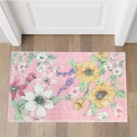 やわらかい踏み心地 玄関マット ベルフラワー 45x75cm ピンク色 室内用玄関マット おしゃれ かわいい ふかふか