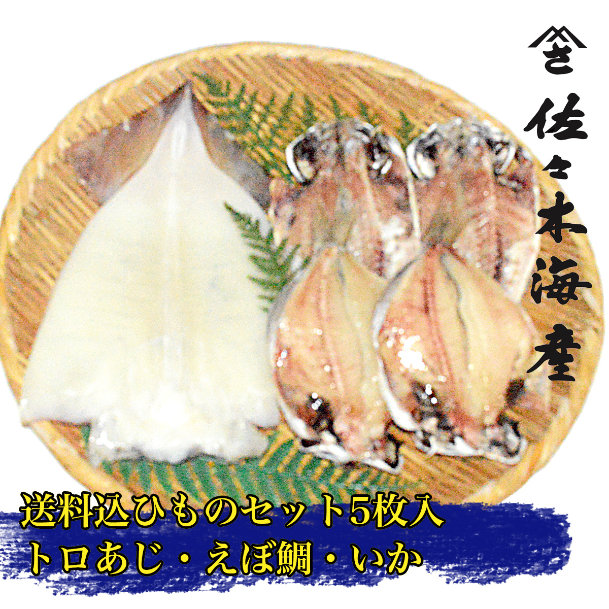 いるか浜A 送料込み干物5枚セット トロあじえぼ鯛イカの一夜干し お中元父の日ギフトお取り寄せ送料無料スルメイカいか鯵アジひもの詰め合わせランキング