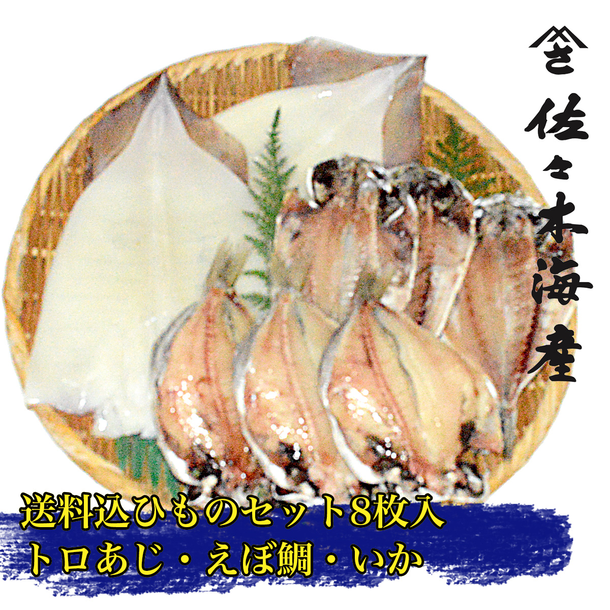 いるか浜B 送料込み干物8枚セット トロあじえぼ鯛イカの一夜干し お歳暮お中元ギフトお取り寄せ送料無料スルメイカいか鯵アジひもの詰め合わせランキング