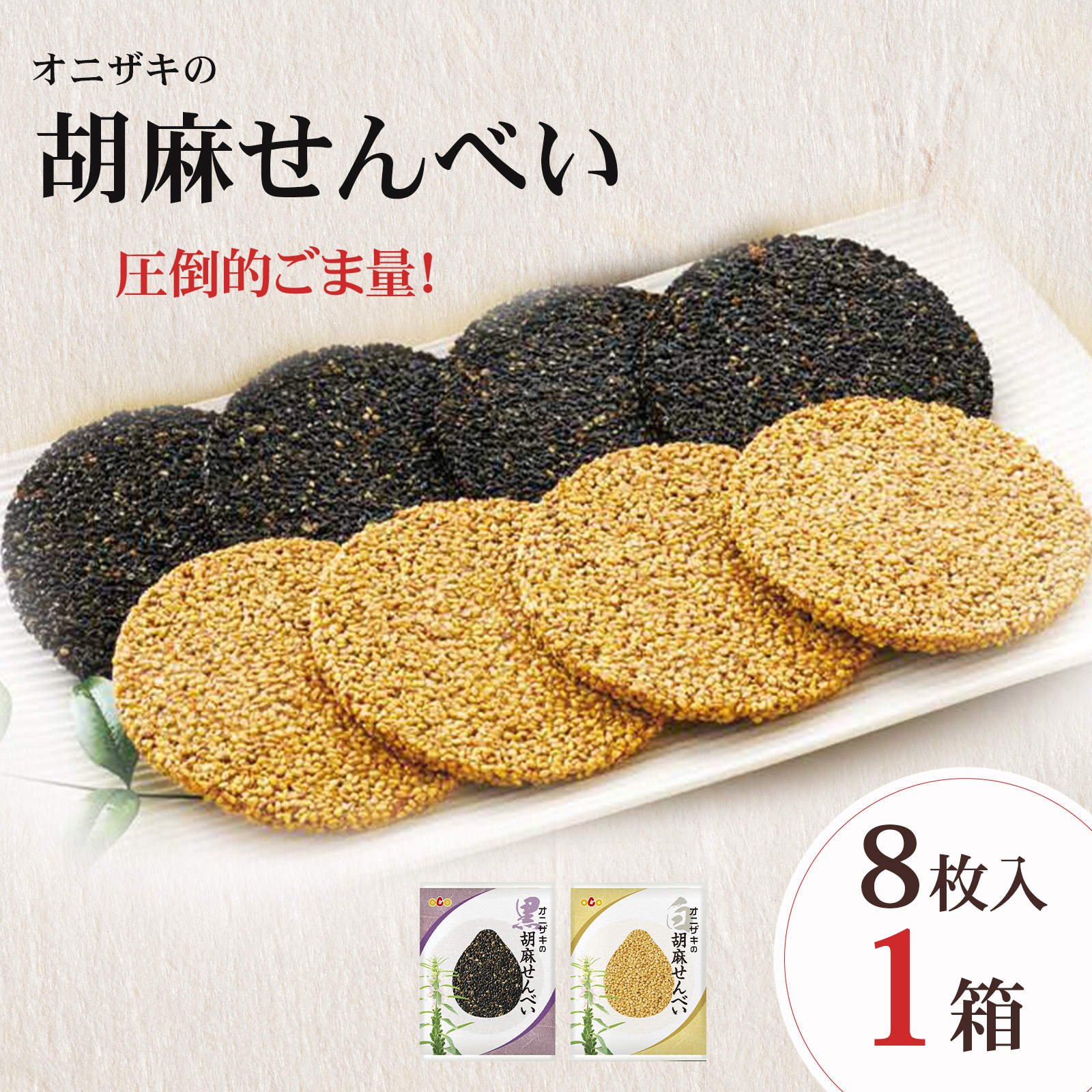 オニザキの胡麻せんべい 8枚入 1箱 白ごま4枚黒ごま4枚 ごませんべい ゴマ煎餅 添加物不使用