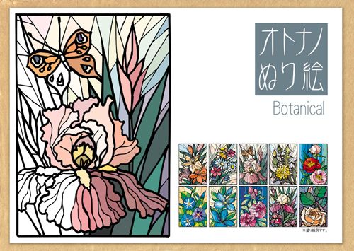 『オトナノぬり絵シリーズ/Botanical』は、草花をモチーフにしたステンドグラス調が印象的なボタニカル柄。