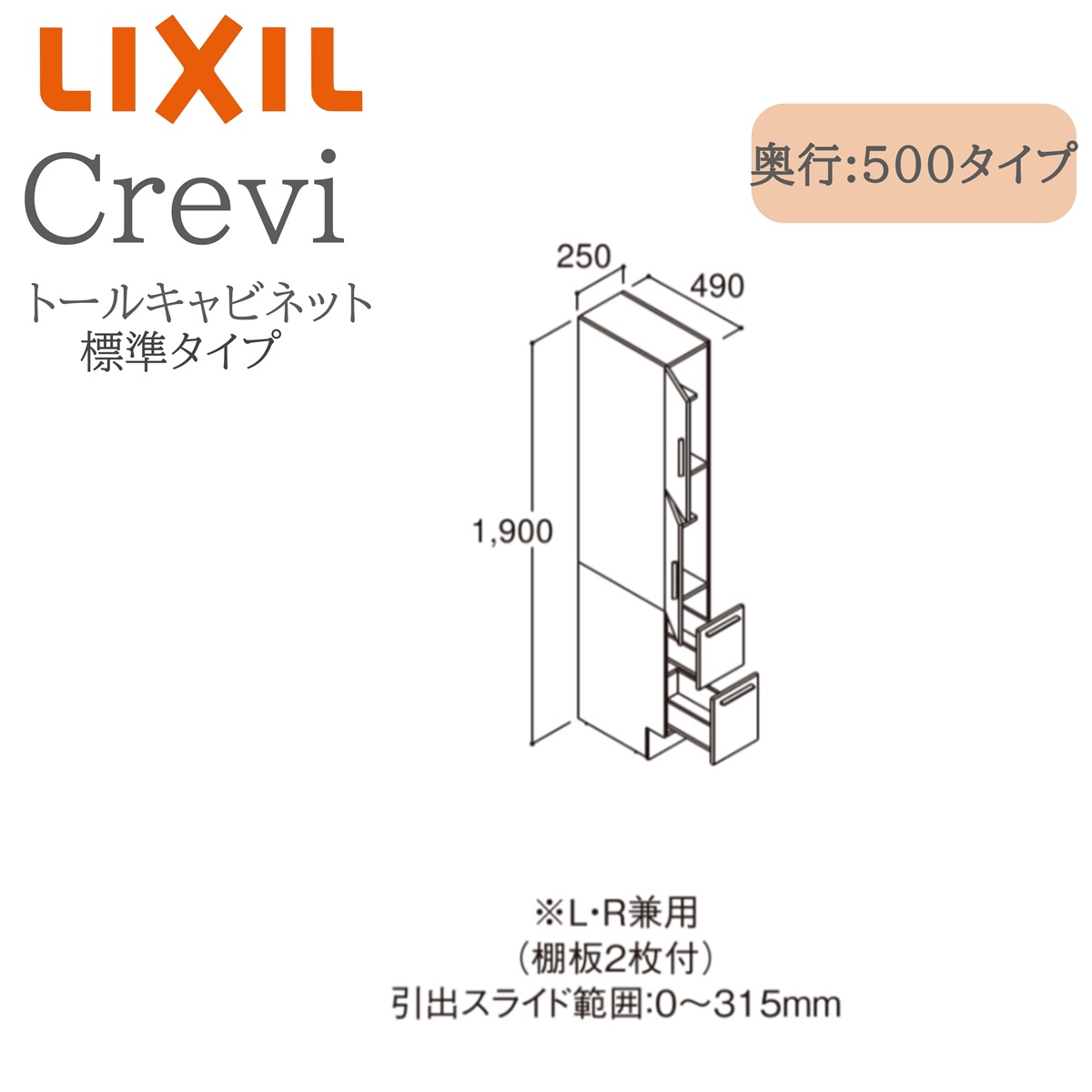 | 商品名 | LIXIL リクシル クレヴィ RBS-255-A 間口250× 奥行500×高さ1900 トールキャビネット 標準タイプ L・R兼用 奥行実寸490mm 収納 洗面化粧台 Crevi INAX DIY lixil |