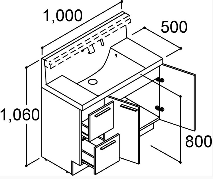 基本寸法:間口1000× 奥行500×高さ1060 クレヴィ 洗面化粧台 交換 取り替え キャビネット おしゃれ