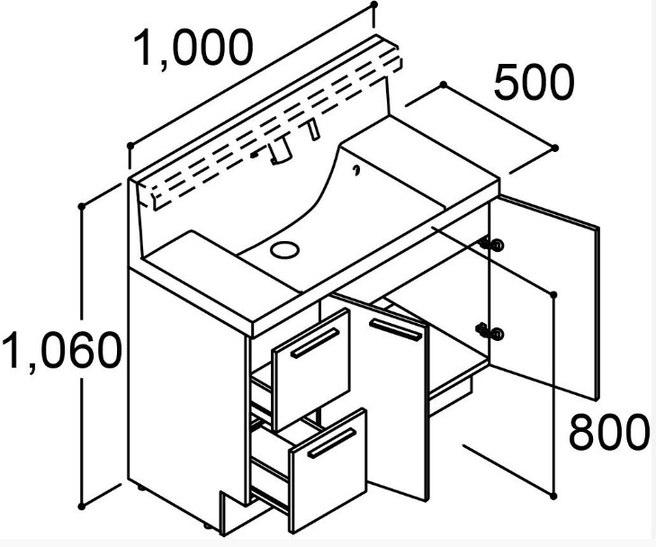 基本寸法:間口1000× 奥行500×高さ1060 クレヴィ 洗面化粧台 交換 取り替え キャビネット おしゃれ