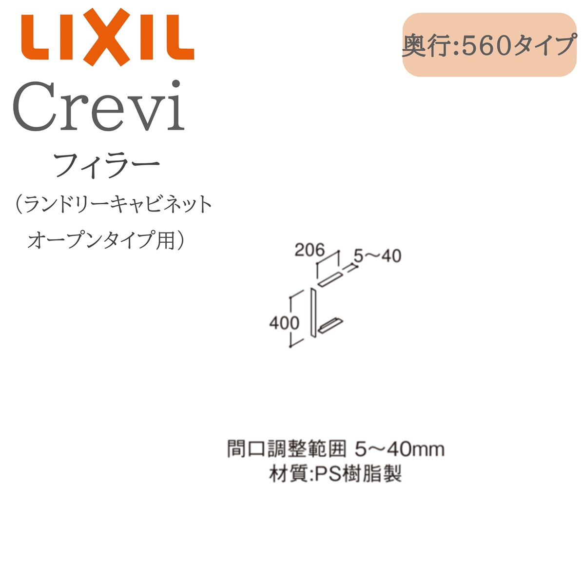 | 商品名 | LIXIL リクシル クレヴィ BB-FK-42/W 間口5〜40× 奥行206×高さ400 フィラー ランドリーキャビネットオープンタイプ用 収納 洗面化粧台 Crevi INAX DIY lixil |