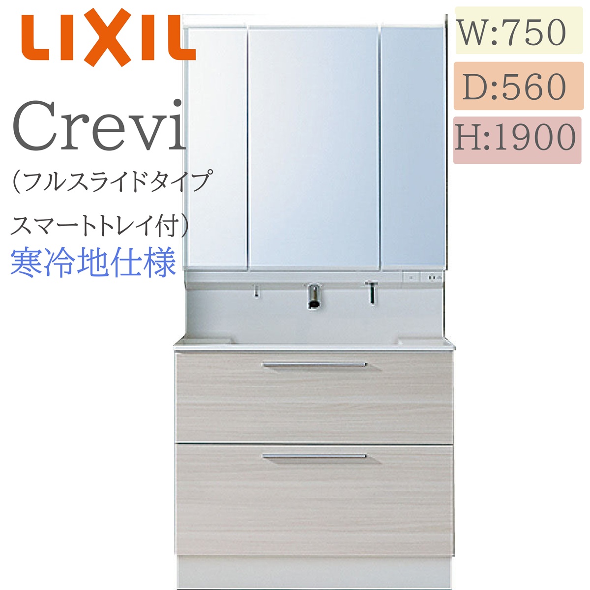 | 商品名 | LIXIL リクシル クレヴィ RASH-755JYN 間口750× 奥行560×高さ1900 ミラーキャビネット付き スマートトレイ付きフルスライドタイプ 寒冷地仕様 タッチレス水栓 洗面化粧台 Crevi INAX DIY lixil |
