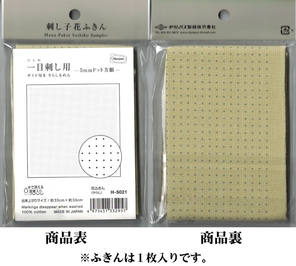 ※柄の細かさにもよりますが、小鳥屋の刺し子糸1かせで、どのふきん柄も2枚は十分に刺していただけます。
