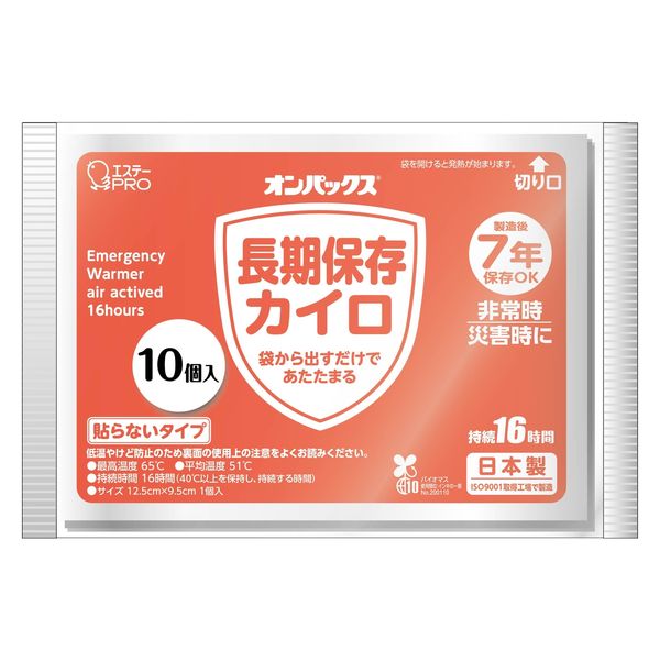 オンパックス 長期保存カイロ 10個入 エステーPRO ST480252 エステー 使い捨てカイロ 備蓄カイロ 備蓄品 災害対策