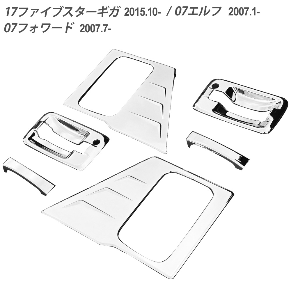 エルフ ファイブスターギガ フォワード メッキ ドア ハンドル カバー 6点セット 17ファイブスター ギガ 07エルフ 07フォワード カスタム デコトラ パーツ