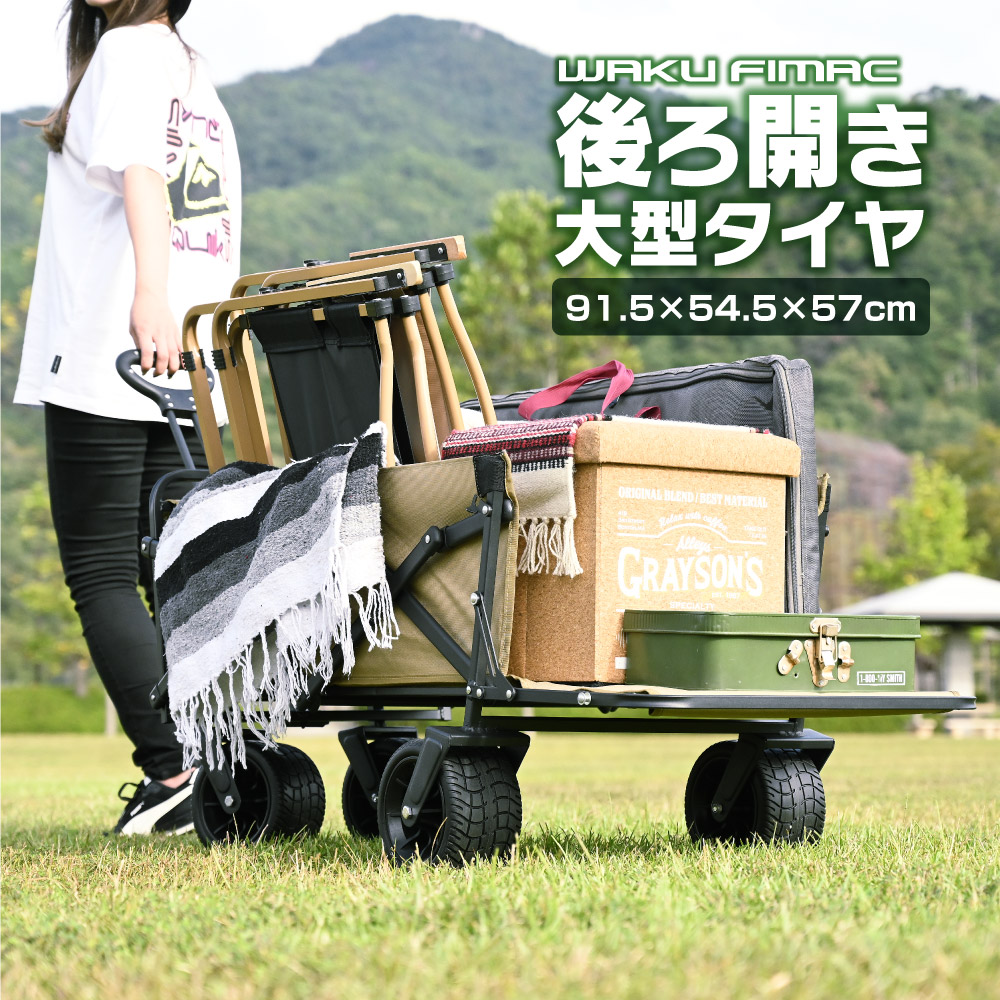 waku fimac 大型タイヤ アウトドアワゴン 100L 耐荷重 120kg 折りたたみ 後ろ開き キャンプワゴン キャリーワゴン ワゴン車 キャリーカート 長物
