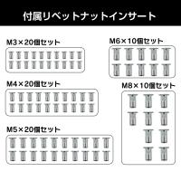 リベットナットがサイズ別に複数個入っており、サイズ別にリベットナットを購入する事が必要ない便利なセットです。