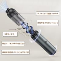 掃除機 コードレス 強力吸引 18000PA ハンディクリーナー 車用 小型 ミニ 卓上 TYPE-C充電式 パワフル 吸引 二段階調整