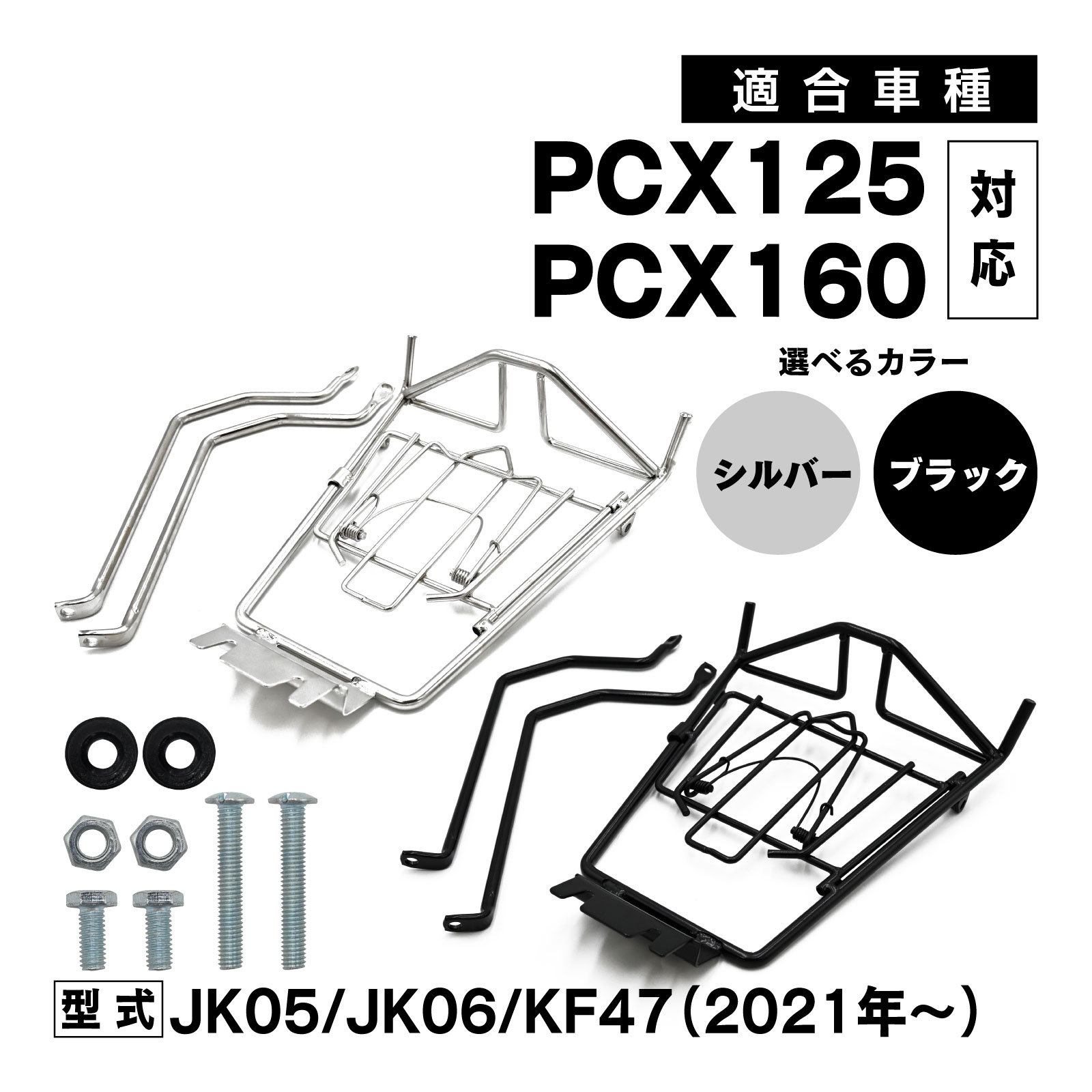 PCX125 PCX160 JK05 JK06 KF47 センターキャリア ベトナムキャリア ツーリング 積載量 UP 車種専用設計 シルバー ブラック カスタム パーツ