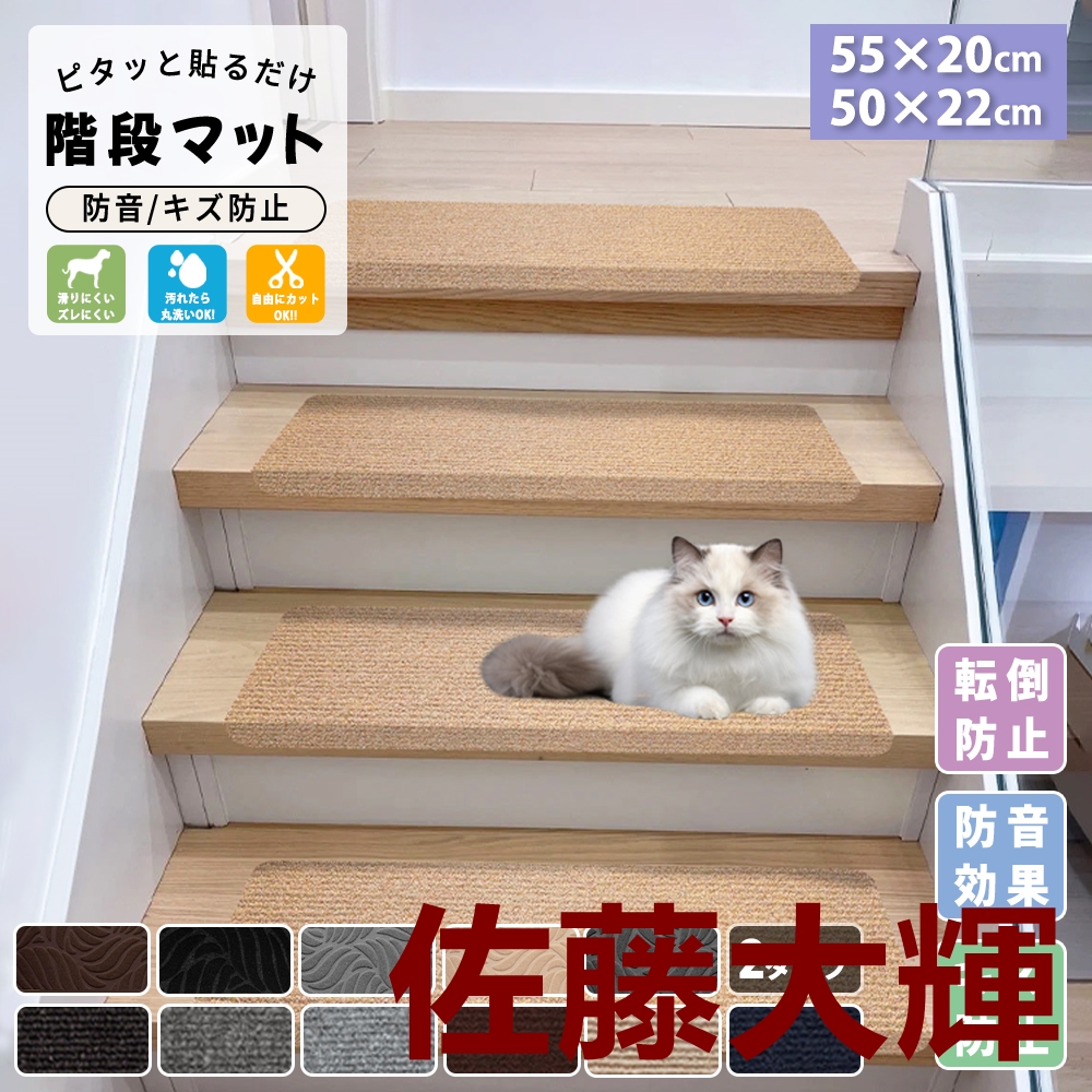 階段マット 滑り止めマット 吸着階段マット 幅50cm 55cm 15枚 犬用 猫用 ペット 洗濯OK 折り曲げ付 置くだけ 転倒防止 ズレない 傷防止