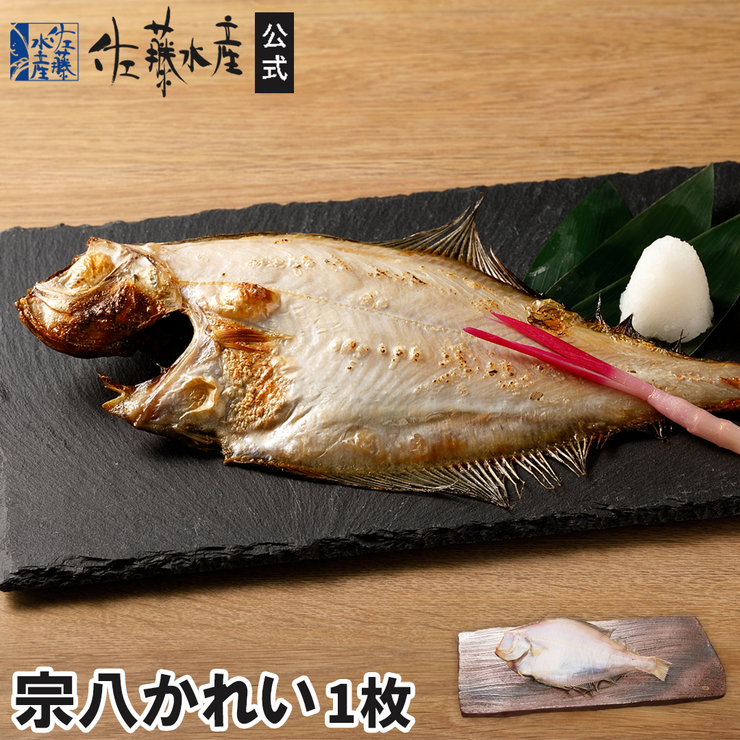 宗八カレイは、カレイの中でも脂肪が多い部類で、干物にすると、グンとうま味が引き立ちます。焼くと表面がカリカリになって白身はプリプリ。淡泊であっさりとした味わいながら、ほど良く脂がのり、独特の風味も食欲をそそります。北海道の干物では、ほっけに次ぐ人気の魚。