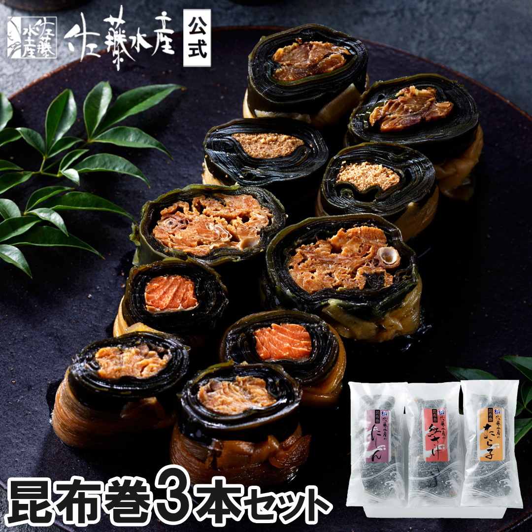 ■セット内容:紅さけ昆布巻、たら子昆布巻、にしん昆布巻
