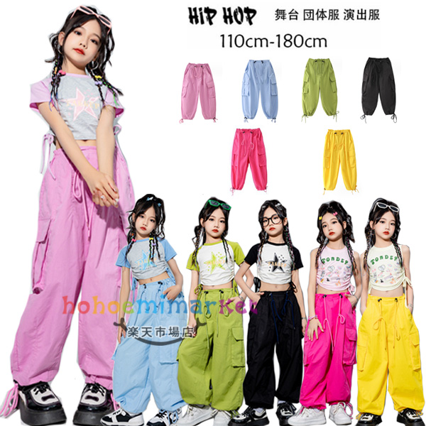 カーゴパンツピンクブルーグリーンブラックバライエロー女の子ダンスパンツ人気ダンスウェアK-pop舞台団体服演出服練習着普段着原宿系パンツ
