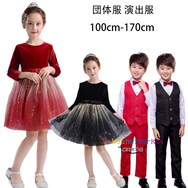 ダンス衣装演奏衣装チアリーダーコーラススピーチコンテスト女の子長袖袖なしワンピース男の子スーツ小学生司会朗読大会演出服舞台団体服キッズ