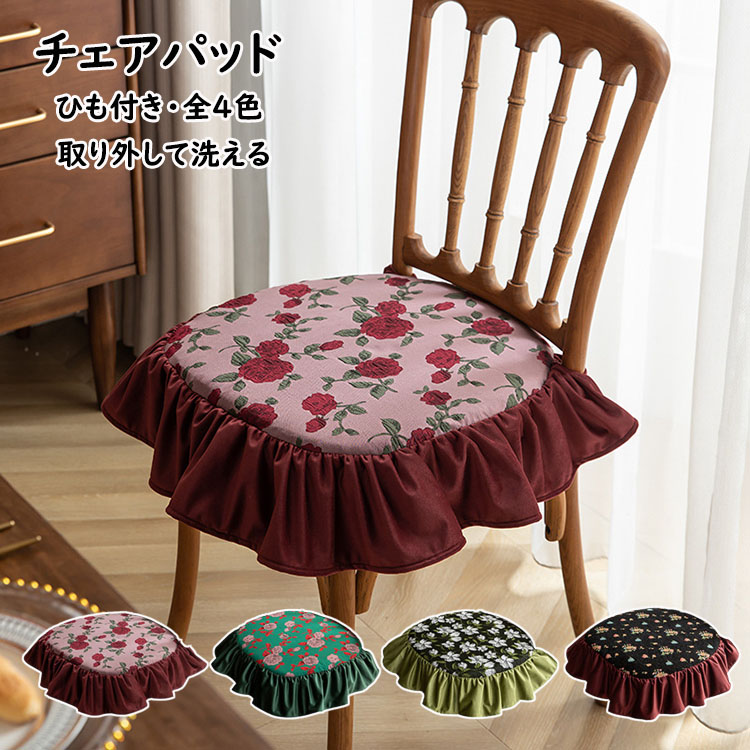 45*45cmチェアパッドフリル付き花柄フロアクッション椅子を飾る座布団おしゃれ取り外し可能洗える紐付きチェアマット椅子用固定用ひも付きカフェ