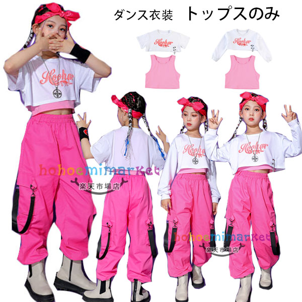 ダンス衣装女の子へそ出しトップス半袖Tシャツ+ベスト長袖Tシャツ+ベストおしゃれチアリーディング応援団キッズダンス衣装hiphopK-pop舞台団体服