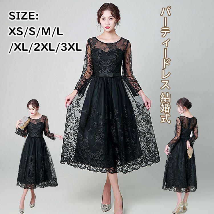 パーティードレス 結婚式 40代 30代 袖あり 長袖 韓国風 大きいサイズ フォーマルドレス レースワンピース お呼ばれ 二次会 披露宴 謝恩会 上品