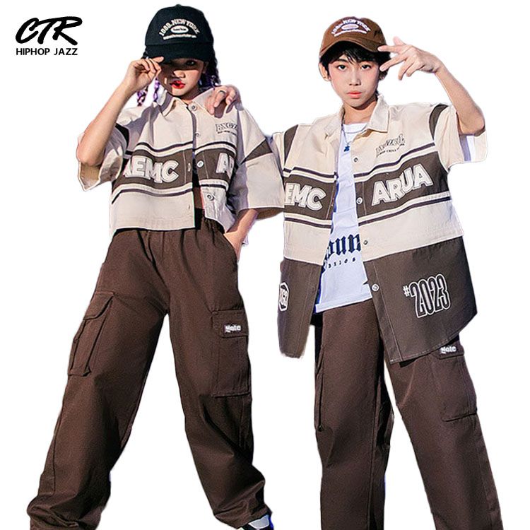 キッズ ダンス衣装 シャツ パンツ タンクトップ ゆったり ヒップホップ ブラウン 長パンツ 男女兼用 男の子 女の子 子供 ロングパンツ k-pop 演出服 社交ダンス