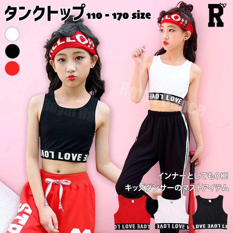 キッズダンス タンクトップ インナー へそ出し ブラトップ トップス シャツ ノースリーブ かわいい ガールズ ヒップホップ kpop 韓国 ロゴ ストリート 子供 女の子